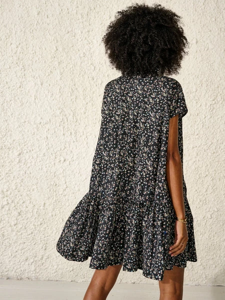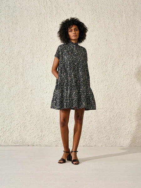 We love the baby doll spirit of Bellerose’s VAHE dress. Crafted from liberty cotton, it features a raised and frilled collar closed by mother-of-pearl buttons, cap sleeves and an oversized silhouette that will sway with your every move. Comes in Black with a small flower print. Wear it with sneakers in the daytime, or opt for a pair of block heel sandals and a few accessories to dress it up. We recommend you size down its very over sized. Sizing: 0 (XS)1 (S)2 (M)3 (L) 100% Cotton Made in Europe Machine wash at 30°C or lower, low bleach allowed, do not fill the drum, delicate spinning Do not bleach Do not tumble dry Iron at low temperature/ heat 110°C Do not dry clean