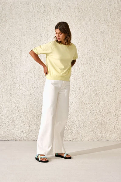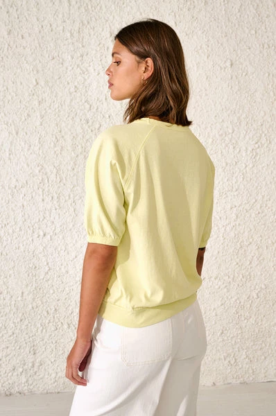 Cut in a light cotton jersey, The Venus tee delivers ease and style all at once. We love its sweatshirt-inspired cut with raglan sleeves, ribbed edges, and in a soft lemon yellow. Pair with light jeans or shorts for a dreamy pastel summer look. – Sweatshirt-style t-shirt – 100% cotton jersey – Relaxed cut – Raglan sleeves – Ribbed edges – Slightly synched in and gathered cuffs and hem The model wears a size 1 0/XXS 1/XS 2/S 3/M 4/L.