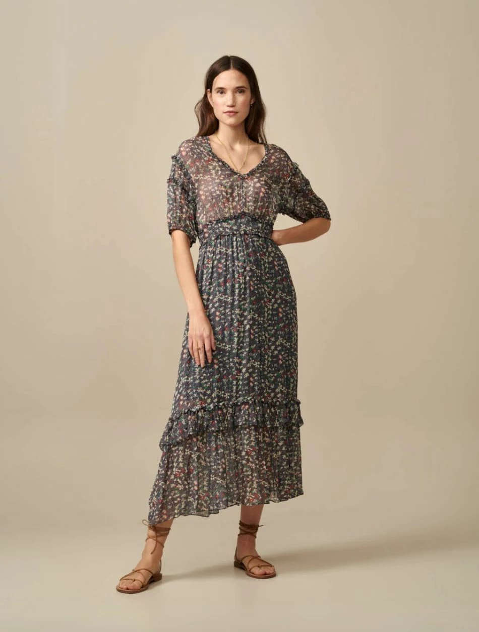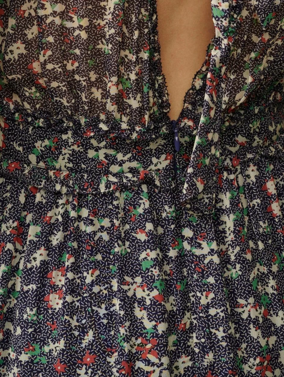 Fai il grande passo con il nostro abito HORACE. Un pezzo unico con un tuffo sulla schiena e dettagli mozzafiato. Viscosa trasparente con motivo floreale, gonna lunga, maniche a sbuffo e scollatura a V rifinita da alcuni fronzoli e volant. Il risultato è un abito profondamente femminile che mescola una forte ispirazione vintage e un moderno romanticismo. – Abito lungo – 100% viscosa – Sprofondare indietro – Maniche a sbuffo