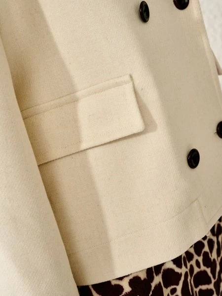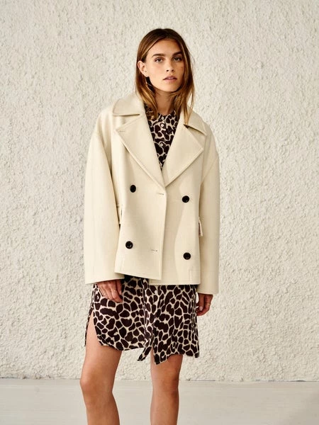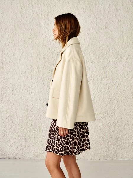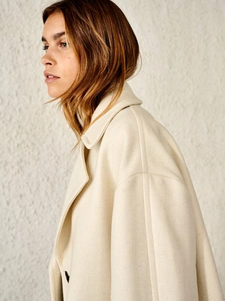 Transitional fashion holds no secrets for us. Our VIENNE jacket is a new style that brings a bit of freshness and a lot of polish to the equation. Inspired by the early ’70s, it presents a double-breasted oversized cut with a large lapel, dropped shoulders, flap pockets, and contrasting horn buttons. We love love love this off-white version for the softness of its wool and its impeccable style. FABRICS & WASHING – 68% wool 20% polyamide/nylon 12% polyester Body lining : 100% cotton Sleeve lining : 100% acetate Made in Europe Do not wash Do not bleach Do not tumble dry Iron at low temperature / Heat 110°C Wash on delicate cycle
