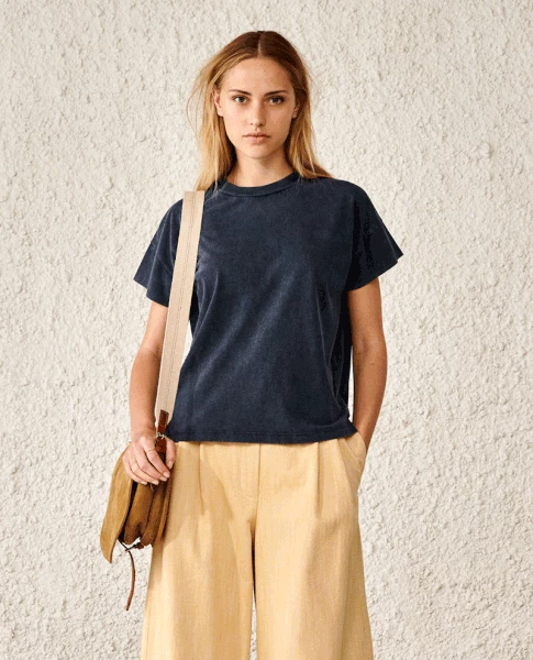 Bellerose Vogue Black T-Shirt, a washed black classic t-shirt with a round neck and a straight fit. Also available in blue this basic everyday tee has short sleeves. 100% Cotton Machine wash at 30 True to size, size up if between sizes