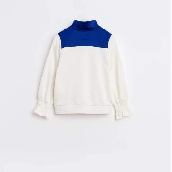 Sweatshirt jacket with zipper in white and blue with retro style pockets, made of 60% polyester and 40% cotton. Ideal to combine with the FEBI short.